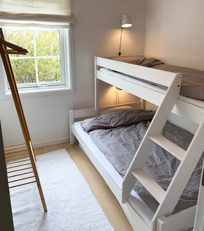 The small bedroom on the ground floor has a bunk bed with a double bed at the bottom. The mattresses are of foam type and are 80 and 120 cm wide.